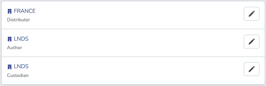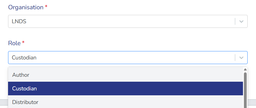 - The same organisation can have multiple roles (e.g., both Author and Custodian)