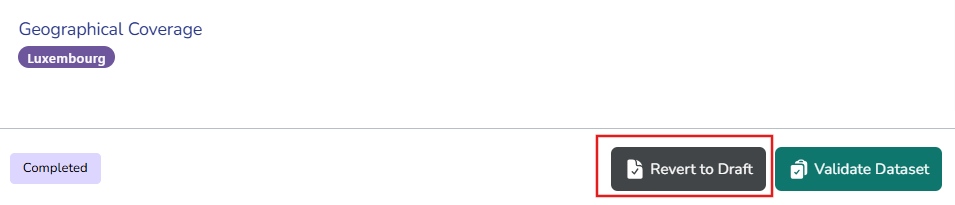 - Datasets can be reverted from Completed, Validated, or Approved stages